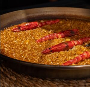 La ruta del arroz continúa en los chiringuitos, donde el mar se convierte en el mejor aliado. En Chiringuito Camarón (Punta Umbría), situado en una de las playas más animadas de la provincia y muy cerca de la ría, los guisos y arroces marineros son un clásico: desde la paella mixta de secreto ibérico y marisco hasta el caldoso de bogavante.