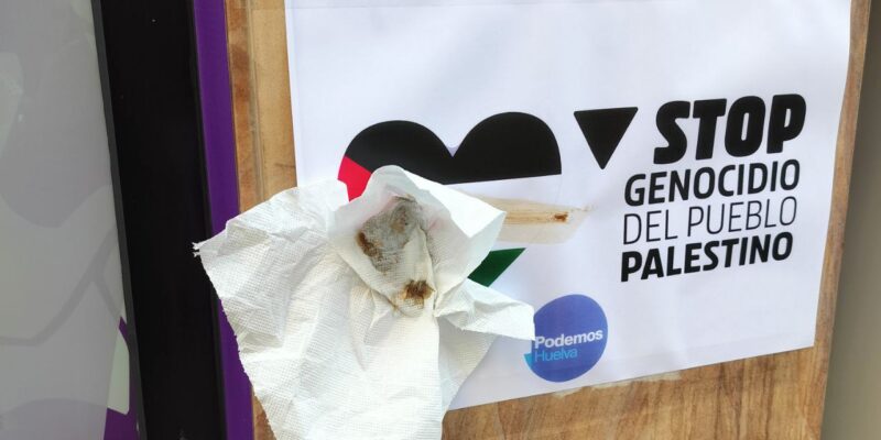 José Antonio González, responsable de organización de Podemos en la capital, explicó que “es habitual que rompan nuestros carteles y dejen otras muestras de vandalismo. Pero en esta ocasión se han esmerado usando excrementos como forma de expresión. Parece que les molesta particularmente los carteles alusivos al genocidio que tiene lugar en Palestina. Es curioso hasta dónde llega la intolerancia de ciertos individuos y cómo el neofascismo, en las redes y los medios, consigue moldear la mente de algunos, llevándoles a actitudes violentas”.