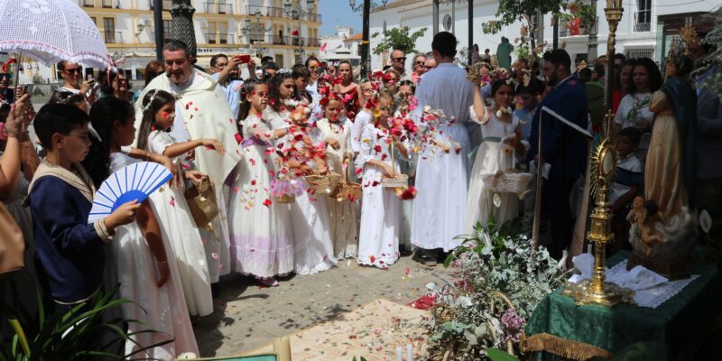 Cartaya ha vivido este fin de semana una emotiva celebración del Corpus Christi, en la que han participado numerosos niños y niñas que este año han hecho su Primera Comunión.