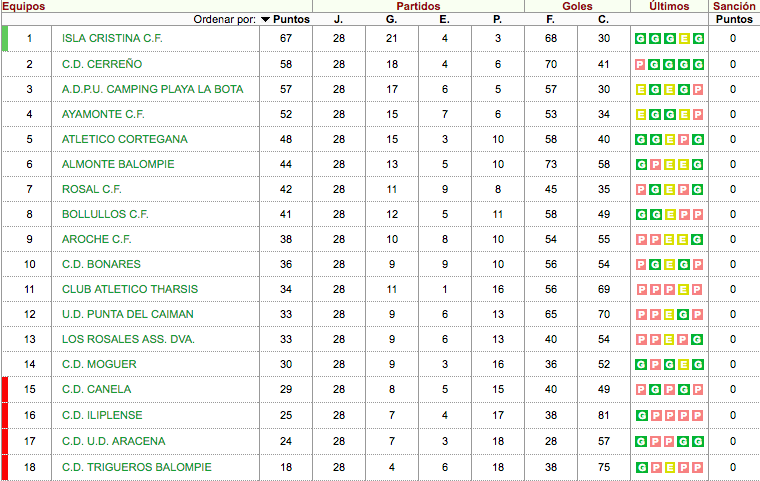 La jornada costera en Primera Andaluza dio el pistoletazo de salido con un magnifico encuentro entre el Isla Cristina CF, líder de la categoría, y el Camping la Bota, segundo clasificado. Victoria para los isleños que se hicieron fuertes en casa y dominaron el encuentro durante gran parte del envite. De esta manera, la plantilla de Acosta acaricia División de Honor, mientras que los chicos de Antonio Andrés bajan a la tercera posición con 57 puntos. Los goles fueron obra de: Sebas (1-0); Imanol Ballester (1-1); Sebas (2-1); Diego Ignacio (3-1); y José Jesús Casado (3-2).