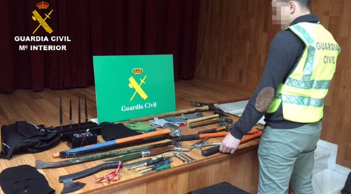 Además se han intervenido diferentes objetos utilizados para perpetrar los robos, tales como inhibidores de frecuencia para desactivar las alarmas de los locales y así no llegar a ser descubiertos, mazas, martillos, uñas para hacer palancas, una cizalla, destornilladores, una navaja de grandes dimensiones, guantes y un pasamontañas entre otros.
