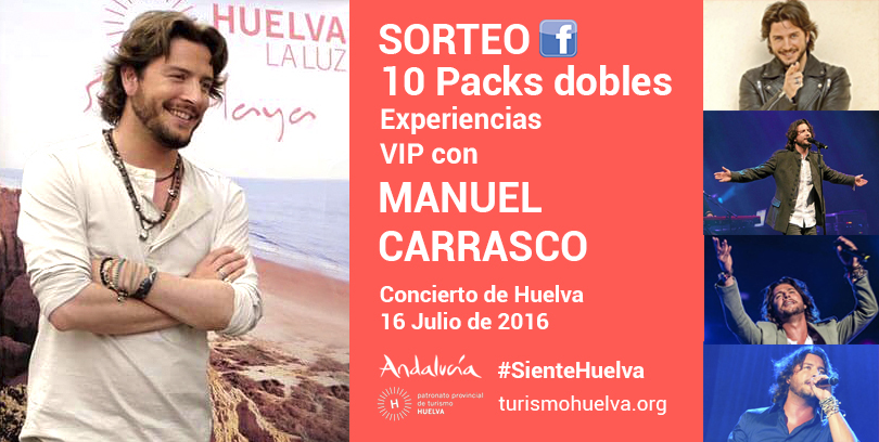 El Patronato Provincial de Turismo de Huelva ha lanzado un concurso en sus perfiles de las redes sociales Facebook y Twitter, por el que se sortearán 40 entradas VIP y 20 ‘meet and greet’, (encuentros con el artista antes del concierto), para el  concierto de Manuel Carrasco del próximo sábado 16 de julio en el Estadio Iberoamericano.
