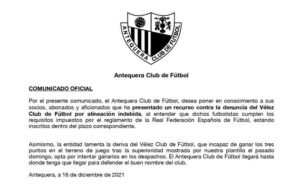 Esta situación ha hecho que aumente la crispación entre ambos clubes malagueños, exponiendo el Antequera CF en un comunicado que siente la acción veleña: “la entidad lamenta la deriva del Vélez CF, que incapaz de ganar los tres puntos en el terreno de juego tras la superioridad mostrada por nuestra platilla el pasado domingo, opta por intentar ganarlos en los despachos”.