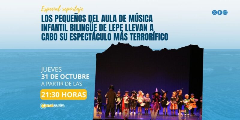 Disfruta de un espectáculo »terroríficamente» divertido de la mano del Aula de Música Infantil Bilingüe de Lepe y su ya tradicional ‘Happy Halloween’ en Canalcosta a partir de las 21:30 horas.