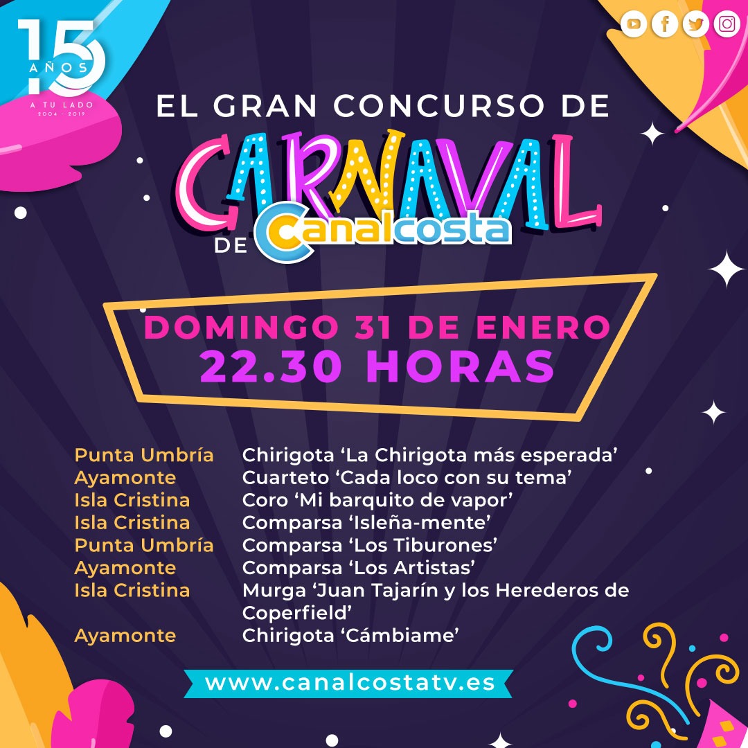 Recuerda que puedes participar con nosotros con #CanalcostaCaranval en redes sociales.