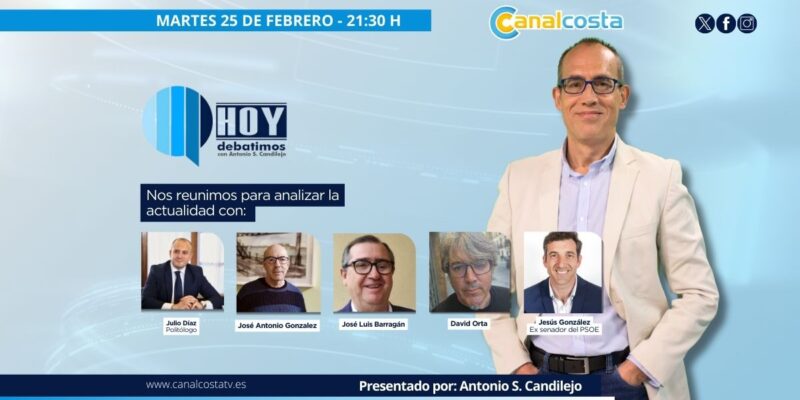 Este martes 25 de febrero a las 21:30 horas, Canalcosta trae una nueva edición de Hoy Debatimos, el espacio de análisis y tertulia que aborda los temas de actualidad con los mejores expertos y analistas. En esta ocasión, el programa tratará cuestiones de gran relevancia en el panorama político y social, con una escaleta cargada de contenido.