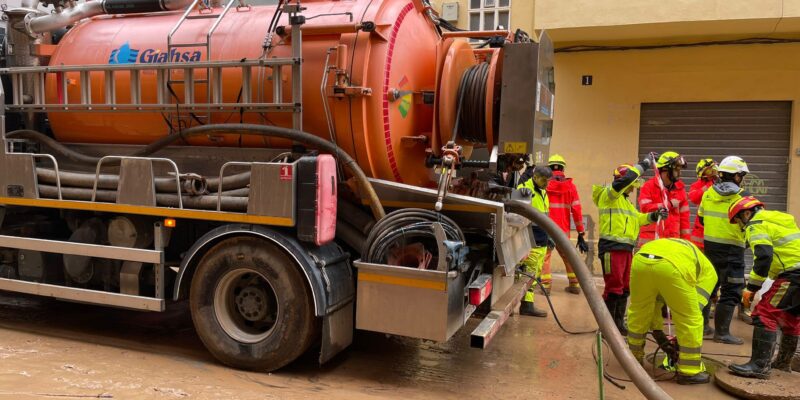 En respuesta a los daños causados por la DANA del pasado 29 de octubre en la provincia de Valencia, Giahsa ha puesto a disposición de la empresa de servicios públicos Global Omnium un camión de saneamiento, que partió hacia la localidad de Paiporta el pasado domingo día 10. Este equipo, dispuesto por la contrata Dominagua, ha contado con tres experimentados operarios (los hermanos Alejandro, Jorge y Avelino Carrasquilla, hijos del propietario de la misma) que están trabajando de manera intensa y ejemplar durante esta semana en labores de limpieza y desatasco en colaboración con los equipos locales.