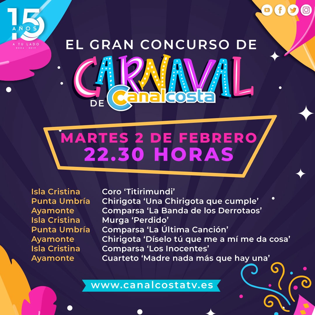 Hoy descansamos sesión de nuestro Concurso de Carnaval. Mañana volveremos a las 22:30 horas. Hoy ya tienes disponible la página web para votar a tus favoritos y tener la posibilidad de llevarte premios de hasta 500 euros.