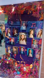 La zona central de cada escaparate están dedicados a las reinas con Isabel García Díaz en el juvenil y con María del Carmen López Araujo en el infantil y cuentan con una decoración carnavalera y colorida.