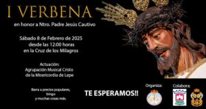 Este sábado, 8 de febrero, a partir del mediodía, la Hermandad tendrá una convivencia entorno a Jesús Cautivo con actividades y concierto de la Agrupación Cristo de la Misericordia de Lepe.