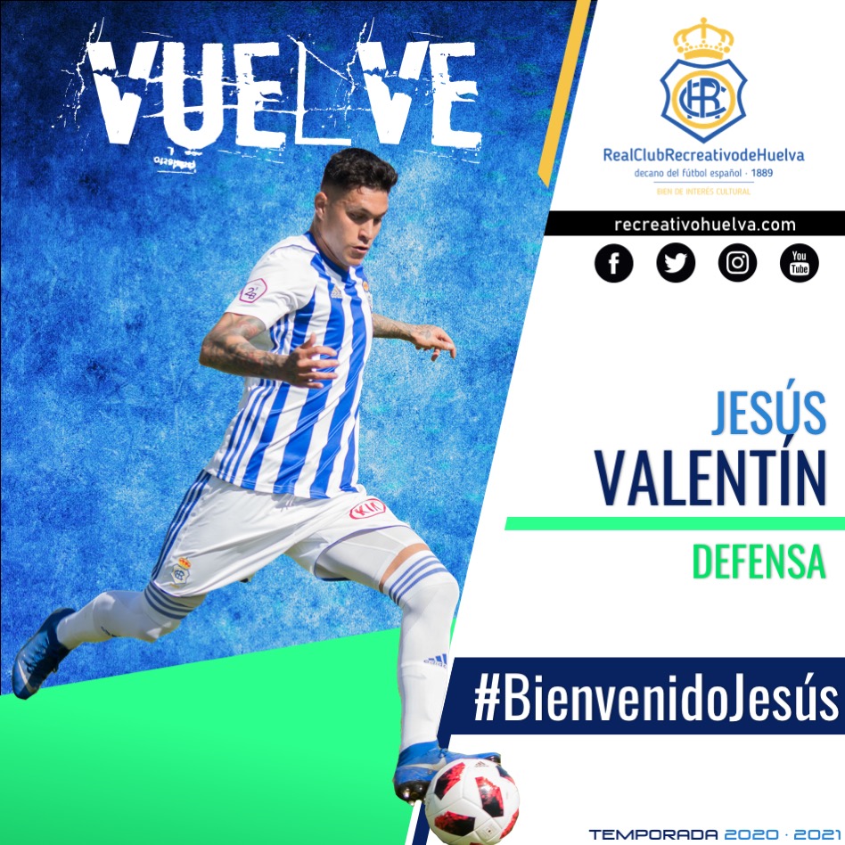 «El Recreativo de Huelva y Jesús Valentín han alcanzado un acuerdo para volver a unir sus caminos y que el central tinerfeño vuelva a defender los colores del Decano durante la próxima temporada.