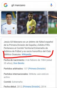 El gol de Chimy Ávila tras cometer una falta clara no pitada a Morcillo en el tanto que supuso el empate del Osasuna (2-2) en el choque de ayer durante la Copa del Rey ha desatado multitud de `memes´ hacia Gil Manzano. Como dice el dicho: A mal tiempo buena cara. Eso es lo que se ha tatuado el aficionado recreativista, que a pesar de mostrarse orgulloso de la intensidad y buen juego del Recreativo ha tirado de ironía hacia el colegiado en Wikipedia. De esta manera, simpatizantes del Decano han modificado la sección de Manzano en esta plataforma: