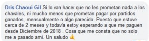 Debido a los comentarios vertidos por Driss Chaoui, ex jugador del Camping Playa La Bota y AD Cartaya, que ha publicado en redes sociales que los cartayeros le deben «cerca de dos meses» del sueldo que había firmado, la entidad rojinegra ha informado a esta Redacción que no tiene constancia de ello.