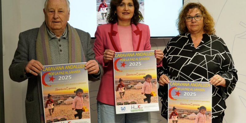 La Diputación de Huelva y la Federación de Asociaciones Solidarias con el Sáhara de Huelva han presentado la ‘Caravana por la Paz 2025’, campaña destinada a la recogida de ayuda humanitaria para los campamentos de refugiados en Tindouf (Argelia). La diputada de Asuntos Sociales, Carmen Díaz, y los representantes de la Federación han hecho un llamamiento a la solidaridad de toda la provincia de Huelva, que cada año hace posible reunir toneladas de alimentos y material humanitario.