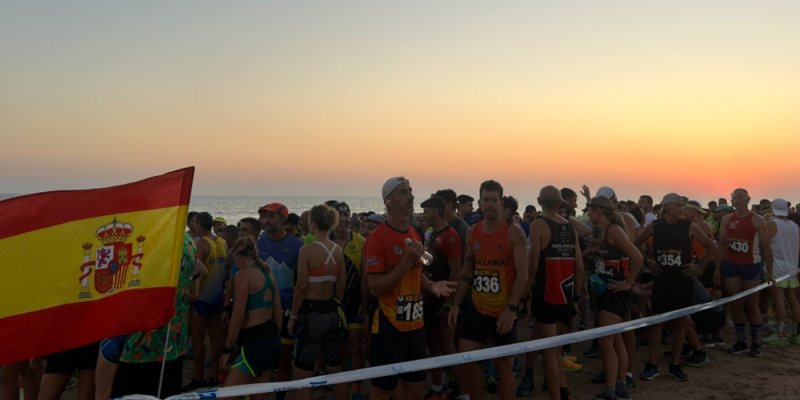 Eran las 9:30 de la noche y escuchábamos este sonido, un precioso atardecer en la playa de cuesta maneli era protagonista del comienzo de la doceava edición de la carrera nocturna playas de Doñana, organizada por el Club Espartanos.