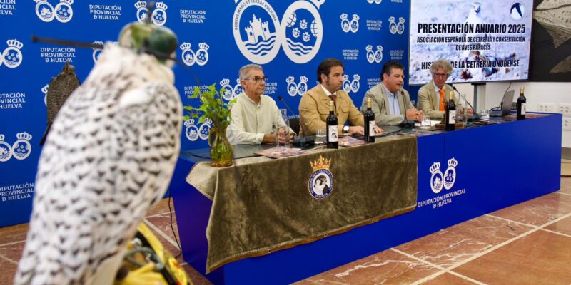 El salón de plenos de la Diputación de Huelva ha acogido la presentación del Anuario 2025 de la Asociación Española de Cetrería y Conservación de Aves Rapaces (AECCA), en el marco del 50 aniversario de esta entidad, que reúne a más de un millar de aficionados y profesionales de toda España.