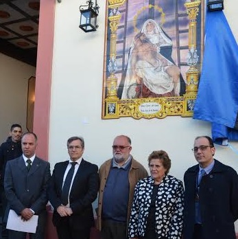 En representación del Ayuntamiento estuvo presente la Alcaldesa, Antonia Grao quien, junto al Primer Teniente de Alcalde, Francisco González, el Hermano Mayor de la Hermandad, Daniel Sánchez y el Rvdo. Párroco Juan Luis Vázquez, se encargaba de descubrir este azulejo cerámico que ha sido ubicado en la fachada de la Casa de Hermandad.