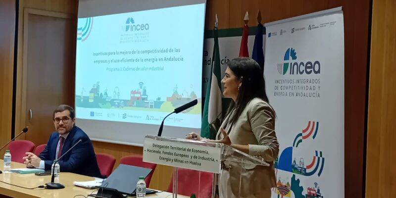 La delegada territorial de Economía, Hacienda, Fondos Europeos y de Industria, Energía y Minas en Huelva, Lucía Núñez, ha inaugurado hoy, 20 de octubre, la jornada práctica “Presentación del Programa de incentivos ‘Cadenas de valor industrial”, junto al secretario general de Industria y Minas, José Javier Alonso. Un programa dotado con un presupuesto de 109 millones de euros con cargo al Programa de Andalucía FEDER 2021-2027, que se enmarca en la Orden de Incentivos integrados de competitividad y energía en Andalucía (INCEA).