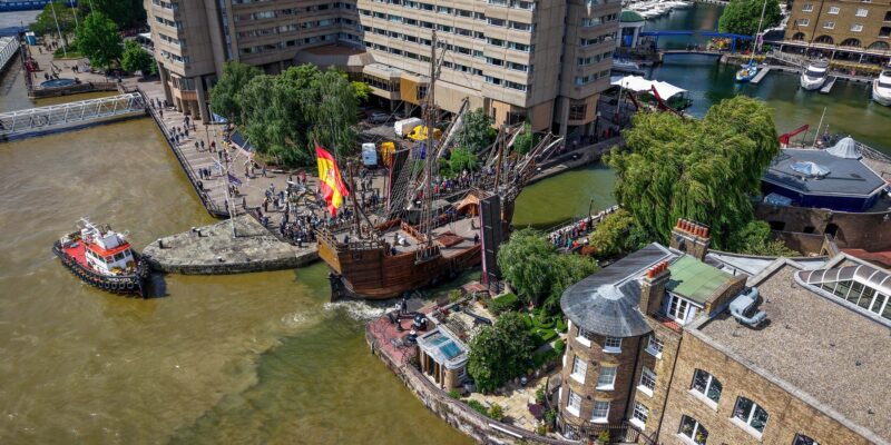 La majestuosa réplica de la Nao Santa María, llega a Londres