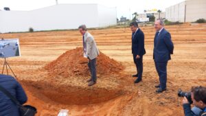En la mañana de este lunes el Consejero de la Junta de Andalucía de Industria, Energía y minas, Jorge Paradela, acompañado por el Alcalde de Lepe, Adolfo Verano, junto con gran parte del equipo de gobierno del consistorio, el director general de VEISA, Alfonso Lucio-Villegas y la delegada territorial de la Consejería de Industria han procedido a la presentación del proyecto y colocación de la primera piedra de unas obras que se estima estén concluidas a finales de 2025.