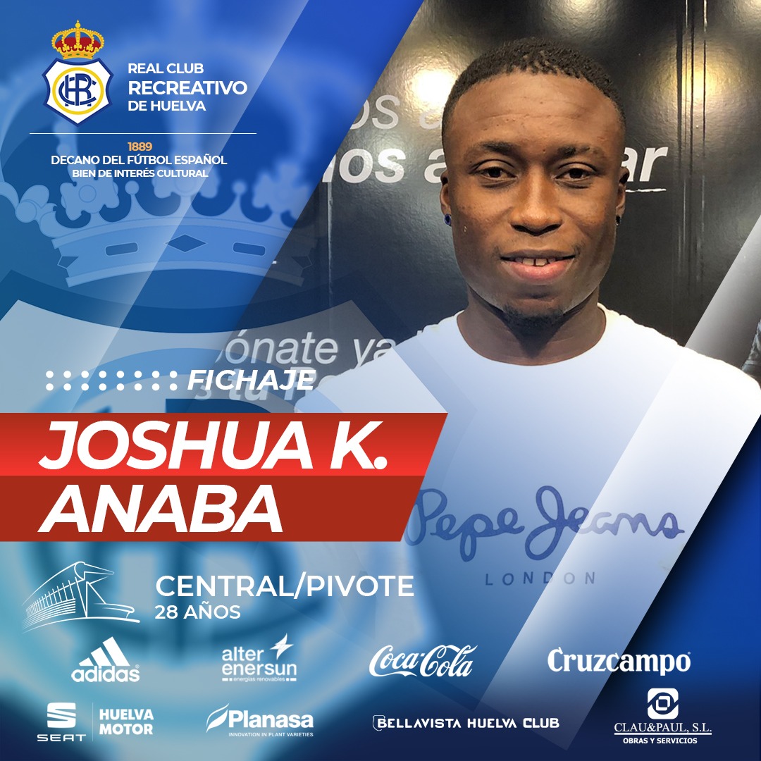 El ghanés Joshua Kweku Anaba (Accra, 16/7/1993) se ha convertido en nuevo jugador del Recreativo para esta temporada. Se trata de un central que aúna velocidad y una gran presencia física, y que además puede actuar de pivote en el centro del campo.