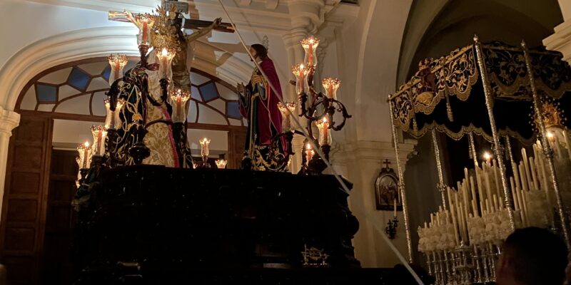 Se trata de la subida al paso de misterio del Cristo de la Misericordia, que partiendo desde el altar portado por mujeres hermanas de dicha Hermandad. Cuando hablamos de las mujeres del Cristo de la Misericordia, dado que dentro de la Semana Mayor lepera es la única Hermandad que cuenta con una cuadrilla de costaleras que portan a Ntra. Sra. del Amor, popularmente conocida como María del Amor, que este año aparece como imagen principal del Cartel Anunciador de la Semana Santa 2025, obra de Juan Alberto Gómez, enmarcada en una escena cotidiana de Cuaresma en una casa típica de abuela.