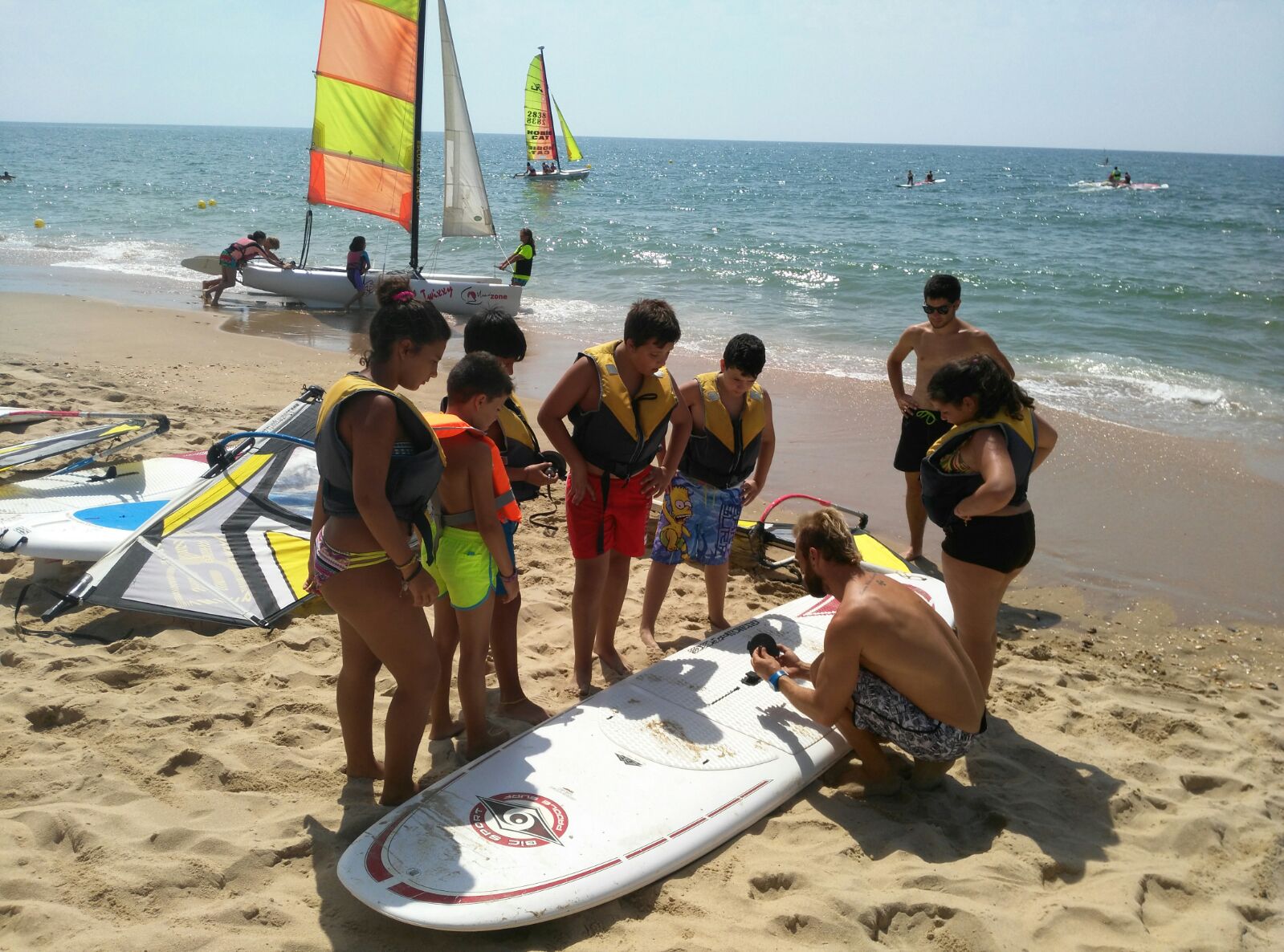 Un grupo de menores  que vienen realizando talleres que se imparten a través del Área de los Servicios Sociales, han disfrutado a lo largo de la mañana de hoy de una serie de actividades naúticas de la mano de la empresa isleña Escuela de Vela ‘Wind Zone’ que ha puesto a disposición de los menores el material y las instalaciones de forma totalmente gratuitas.