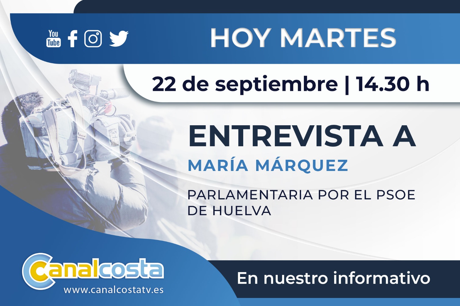 La parlamentaria socialista andaluza, María Márquez, visitará esta tarde el informativo de Canalcosta Televisión, a partir de las 14:30 horas, para abordar varios temas de actualidad como la educación o la salud pública. ¡No se lo pierdan!