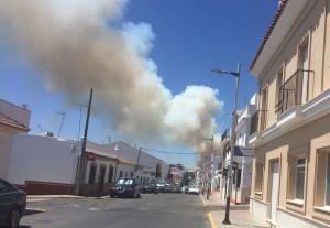 Más de medio centenar de efectivos del Plan Infoca trabajan en la extinción de un incendio forestal declarado a primera hora de la tarde en el paraje la Cañada del Corcho, en Gibraleón.