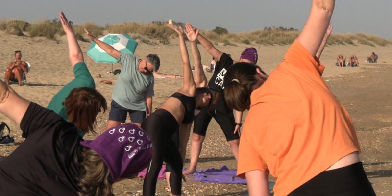 Mujeres de Isla Cristina celebran su salud con senderismo y yoga en la playa