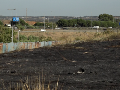 Un incendio cerca del Hospital Juan Ramón Jiménez calcina un solar y alarma a los vecinos de Huelva