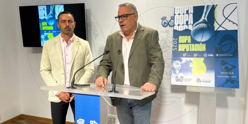 La presentación en rueda de prensa del Trofeo Diputación 2025 de Baloncesto, por el diputado de Deportes, Juan Daniel Romero y el vicepresidente de la Federación Andaluza de Baloncesto y delegado provincial en Huelva, José Luis Pena. ha dado el pistoletazo de salida a la temporada 2025-2026.