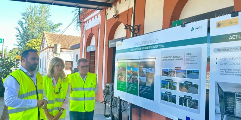 Los técnicos han expresado que Adif avanza en la renovación de la línea de ancho convencional Zafra-Huelva (180 km) con el objetivo de incrementar la fiabilidad, la regularidad y la velocidad en las circulaciones de esta la línea que conecta las provincias de Huelva y Badajoz. Las inversiones movilizadas se acercan a los 210 millones de euros.