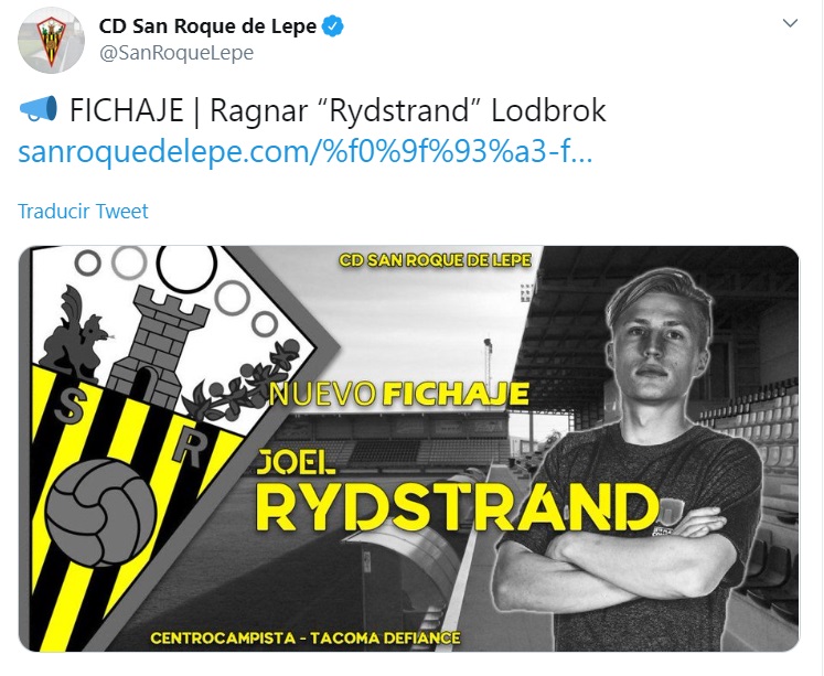 El CD San Roque de Lepe ha anunciado una nueva incorporación para su plantilla, se trata del sueco Joel Rydstrand. El centrocampista de 24 años es natural de Uppsala (Suecia) y ha estado durante los últimos cinco años en Estados Unidos, en equipos como el filial del Seattle USL Tacoma Defiance o el plantel universitario del Creighton University.