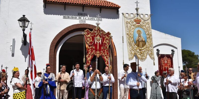 A pesar de una trágica pérdida de una vecina de la localidad, tras la cancelación de las actuaciones concertadas para el sábado como señal de respeto, continúa la romería de la Santa Cruz, donde el pueblo vecino de Aljaraque no ha querido faltar a esta cita.