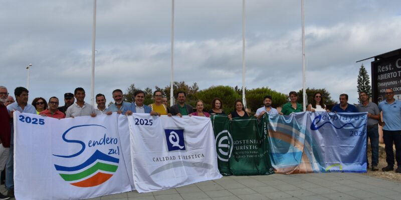 Como se recordará, el distintivo del Sendero Azul ‘William Martin’ es uno de los seis premiados en la provincia de Huelva en esta edición correspondiente al año 2025. Para su izada, se ha contado también con la compañía de miembros de la asociación ‘Major William Martin’. Este sendero discurre por el Paraje Natural de Los Enebrales de Punta Umbría.