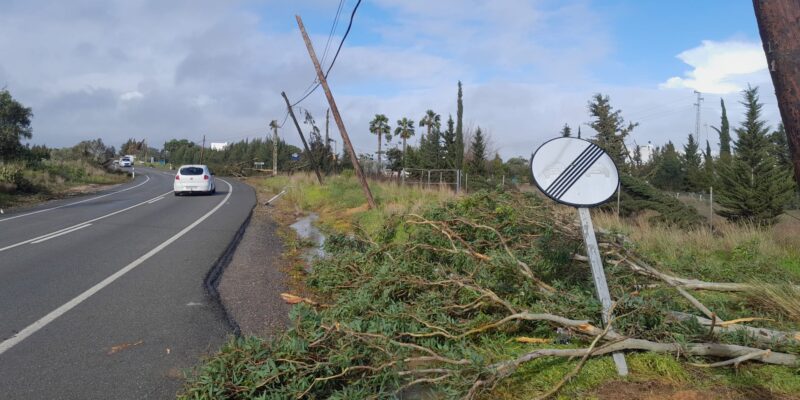 El paso del tornado obligó el corte en ambos sentidos de la carretera N-431 de Ayamonte a Isla, y la que conecta Pozo del Camino con Isla Cristina, la A-5150.