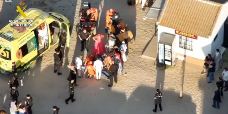 Para la evacuación del enfermo fue fundamental la colaboración del Escuadrón de Caballería de la Guardia Civil, que fue abriendo paso a la ambulancia entre la gran multitud de peregrinos, permitiendo así salir de la Aldea para su traslado a un hospital de Huelva.