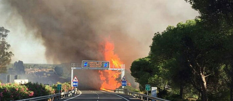 Horas después de que se declarase extinguido el fuego de ayer, que ha arrasado unas 40 hectáreas, a las 19.55 horas de este miércoles se ha producido otro, que ha obligado al corte del tráfico en la autovía que une Huelva con Punta Umbría, dada la cercanía de las llamas y la espesa humareda.