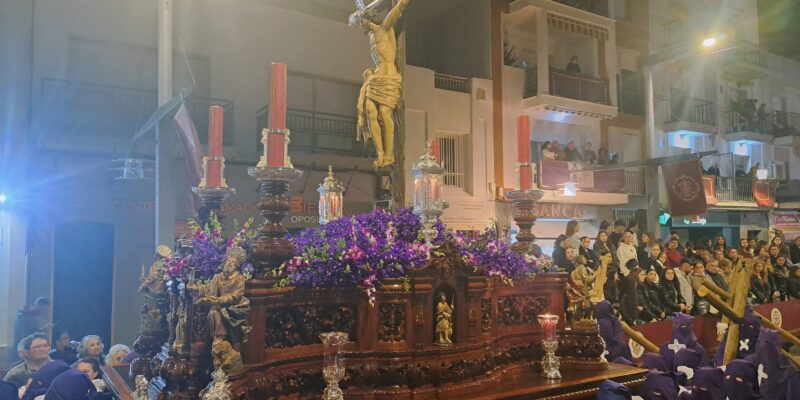 A su paso, se percibía cómo el silencio impregnaba en el procesionar del Cristo de la Vida. Las cruces y cadenas de los nazarenos marcaron la identidad de esta hermandad isleña, que daba paso a la dolorosa con un amplio cortejo de mantillas negras.