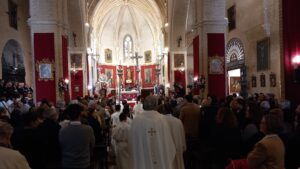 La solemne Función Principal dio paso a la entrega de la venerada imagen al pueblo por parte de un emocionado alcalde, quien tras los vivas al Santo entregó la vara del patrón.