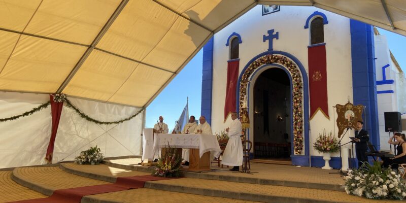 La Hermandad de Nuestra Señora del Carmen de Canela ha celebrado esta mañana un Solemne Pontifical con motivo del primer centenario de la Ermita de Ntra. Sra. del Carmen y de su erección canónica como parroquia. La ceremonia tuvo lugar a las 12:00 en la Ermita de Canela, y fue presidida por el Obispo de Huelva, en un acto cargado de emoción, fe y participación vecinal.