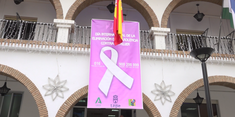 La fachada de la casa consistorial lepera ya luce el lazo blanco con motivo del 25 de noviembre, Día Internacional de la Eliminación de la Violencia Contra la Mujer, y al hilo de este asunto desde el área de Servicios Sociales del Ayuntamiento de Lepe han elaborado una amplia programación que se desarrollará en la localidad durante la próxima semana.